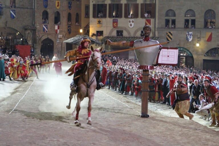 Immerse yourself in authentic Italian culture as you witness the lively competition between Arezzo’s four city quarters during the Giostra del Saracino.